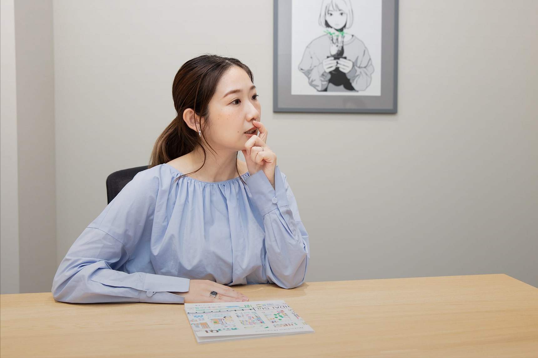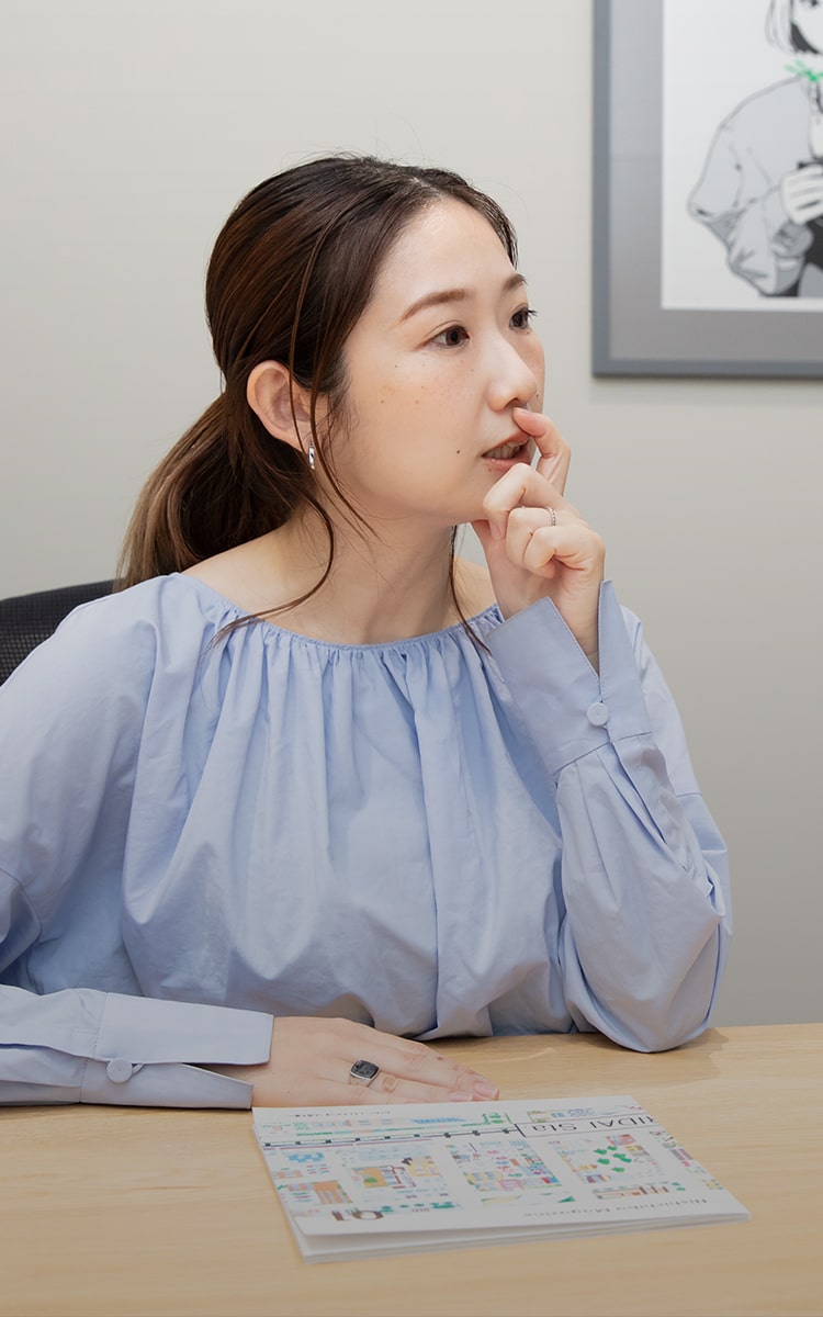 私は現在、コーポレート・アイデンティティ(CI)室のフレンドシップマネージメント部に所属しています。10年近くブランド様と関わる自事※をしていたのですが、自分が関わる世界を変えてみようと、社内公募を利用して異動してきました。